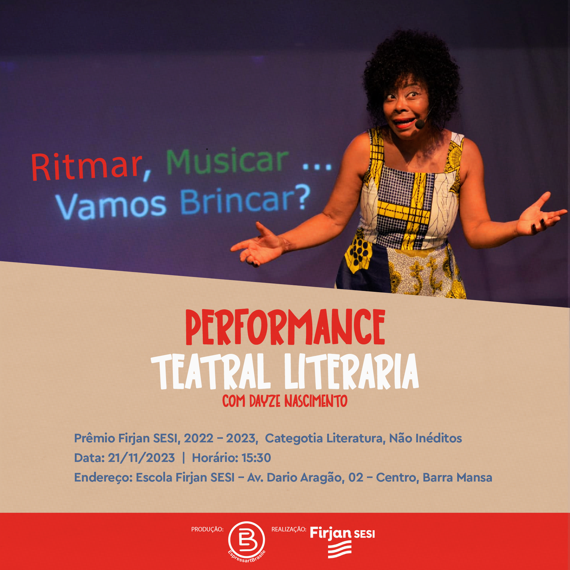 Performance Teatral Literária de contação de histórias. Ritmar, Musicar… Vamos Brincar?