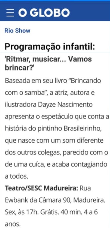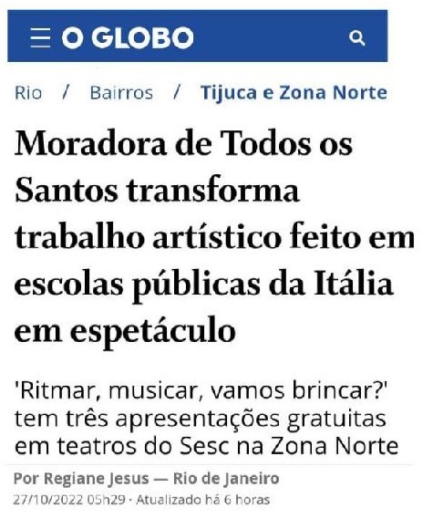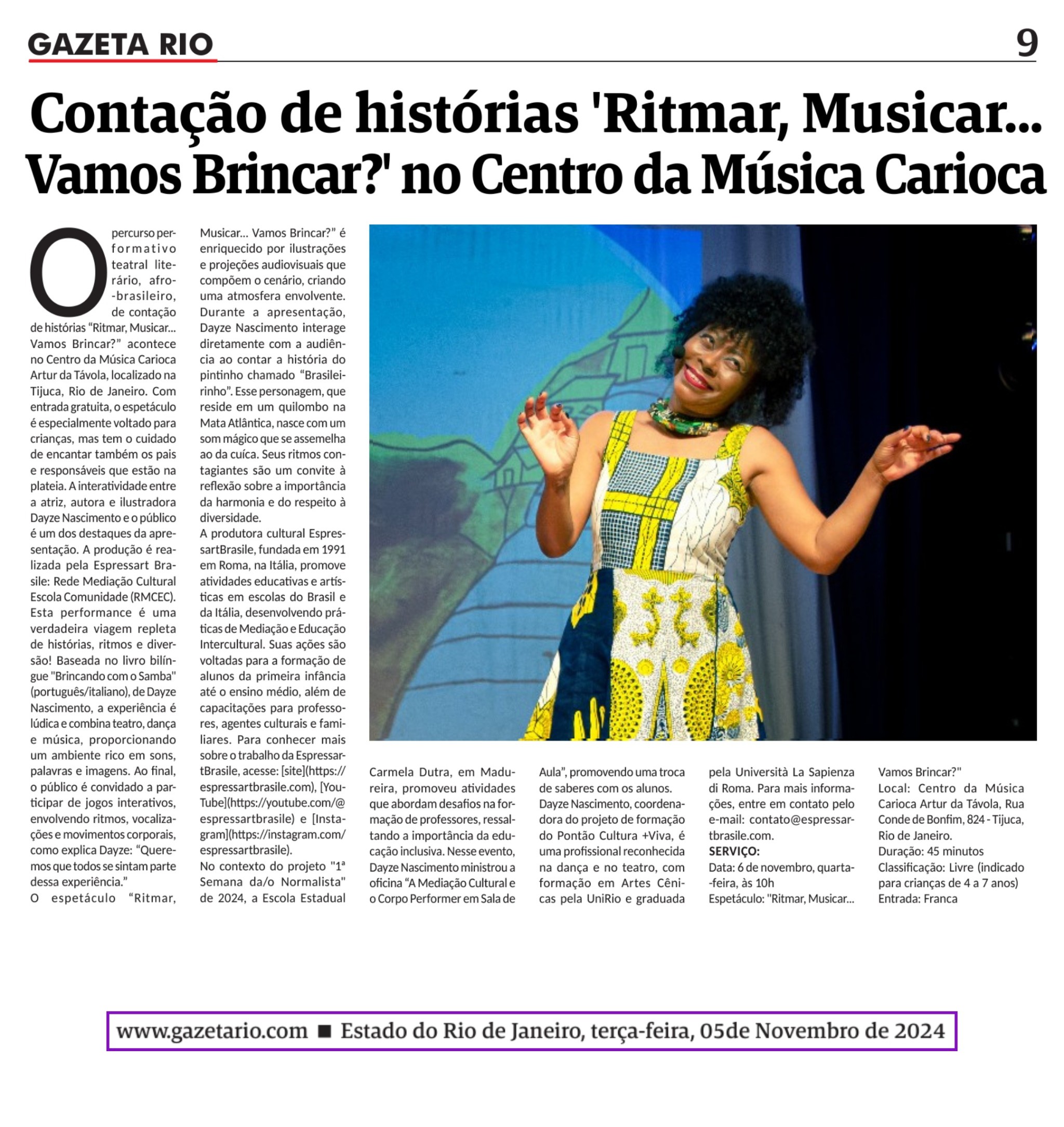 “Brasileirinho: um carioca da gema do ovo” da performance teatral literária de contação de histórias “Ritmar, Musicar… Vamos Brincar?”.