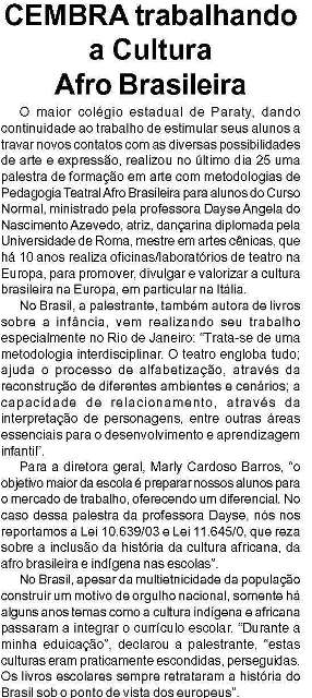 Jornal “A Critica”. Manaus, quarta- feira,13 agosto 2005
