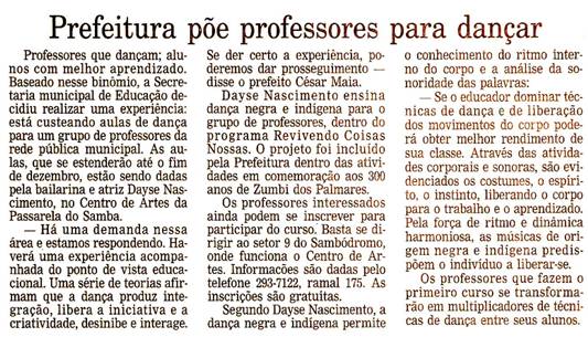 Jornal ” O Globo”. Rio de janeiro,23 novembro 1995